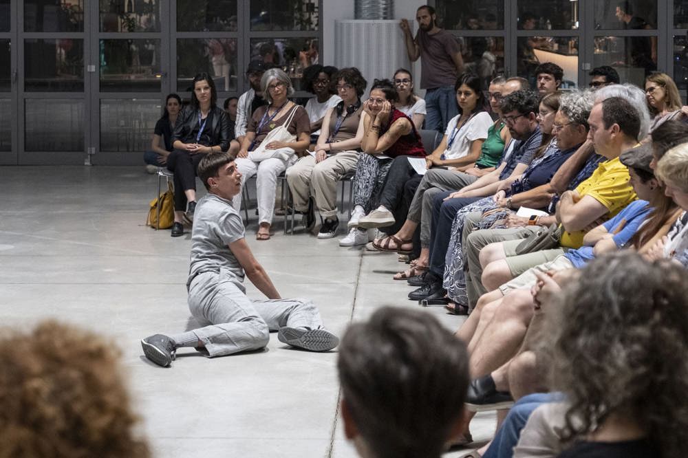 In the performance, Rontini gives substance to the complex physical and emotional dynamics that can come into play in the sometimes painful process of coming out. Alexis's saying and not saying reverberate in the grounded and at the same time aerial physicality of Cristian Cucco, performer of this proposal that, starting from a literary case, shows how in the urgency of a declaration written in the first person one can recognise, instead, collective and shared urgencies that concern, in a fully transversal manner, the condition and state of the human being.